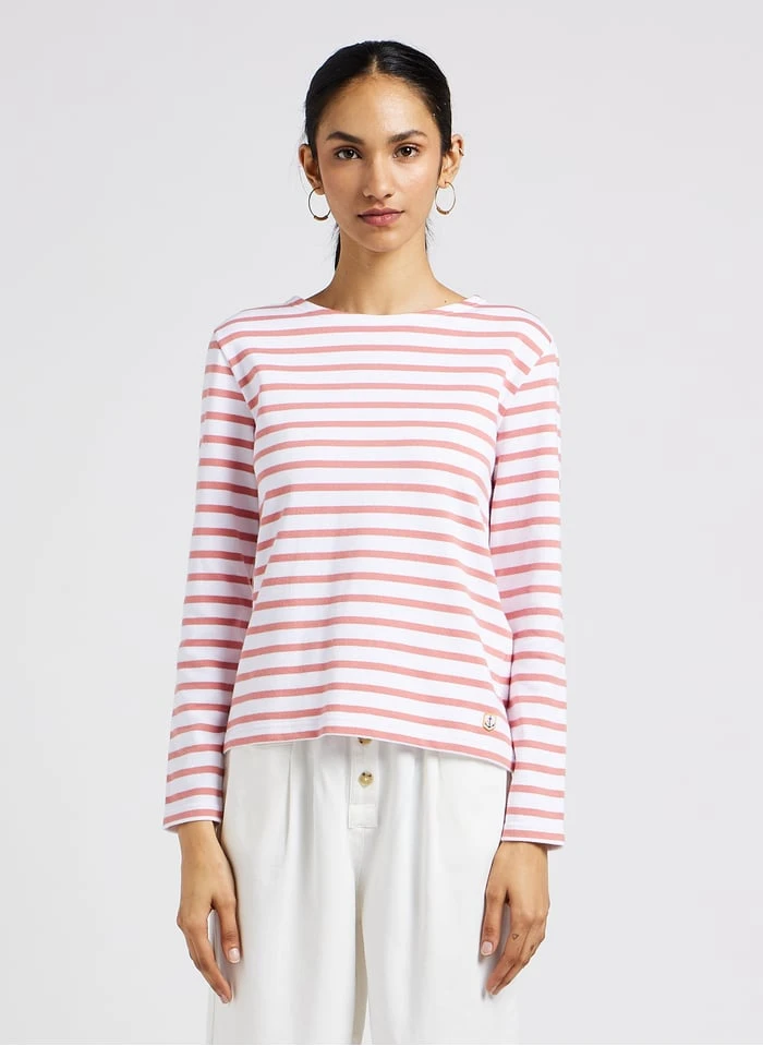 Armor-Lux HERITAGE – Pink Round-neck Striped Cotton T-shirt