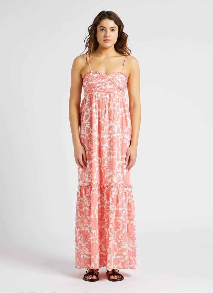 Made from 100% cotton, this long strapless dress features a beautiful all-over floral print in soft pink, creating a light and airy feel ideal for warm-weather days. Whether you’re heading to the beach or a garden party, this feminine piece will have you looking effortlessly elegant. Shop now and steal the spotlight in this dreamy dress at an irresistible price!