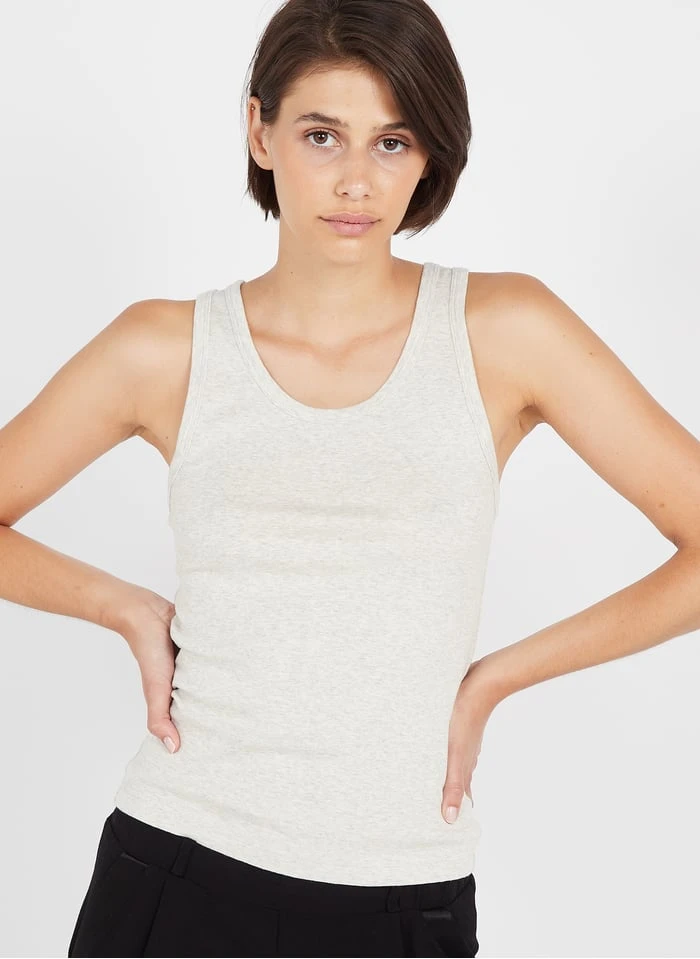 American Vintage FIZVALLEY – Beige Round-neck Cotton T-shirt