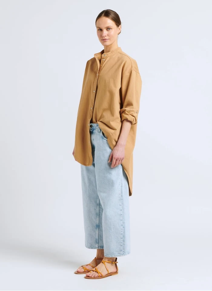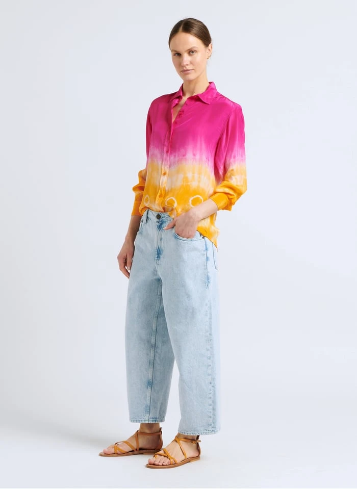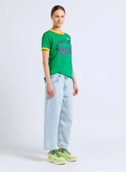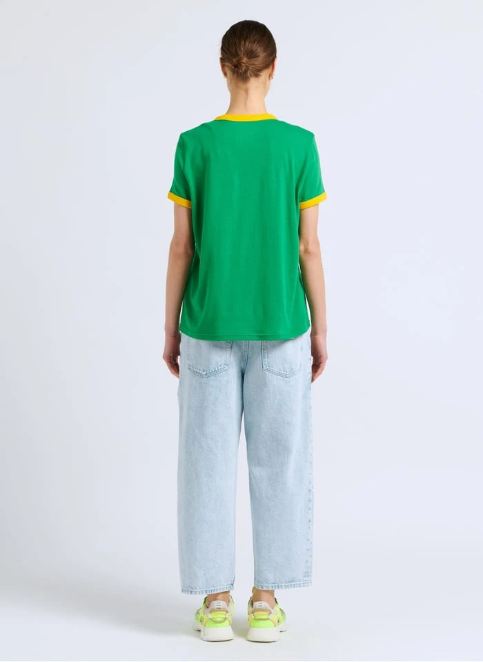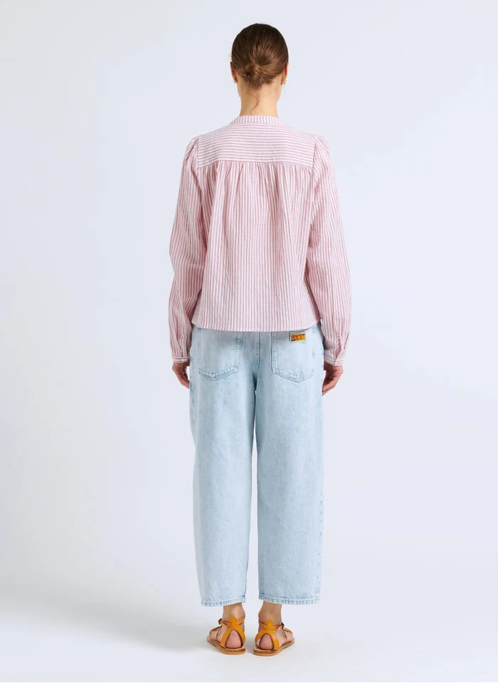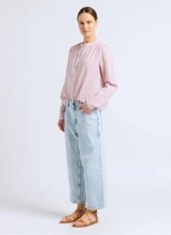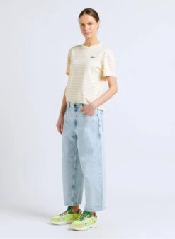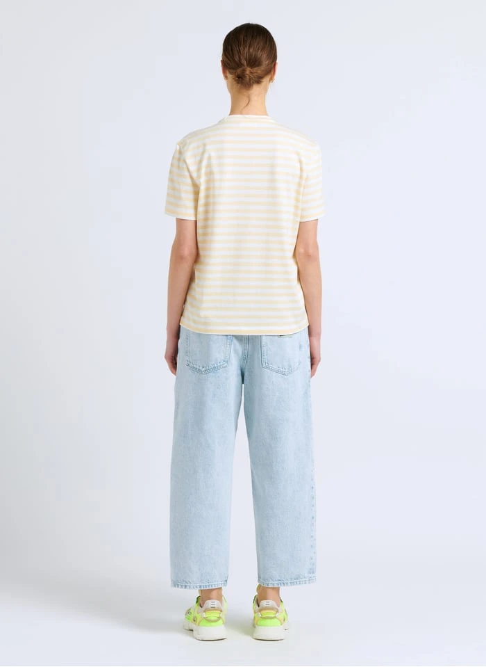 This model is shown wearing Round-neck striped cotton shirt by VILA