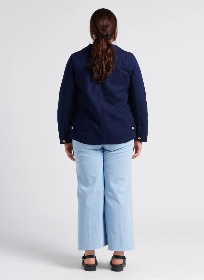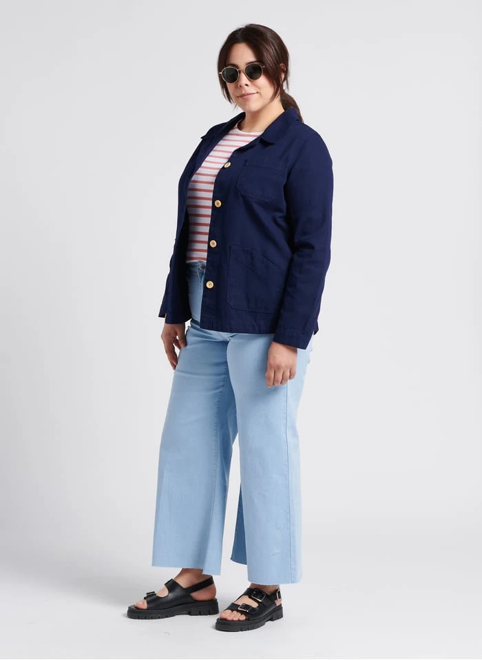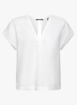 This model is shown wearing Cotton-blend paperbag pants by BELLEROSE, Round-toe low-top sneakers by VEJA