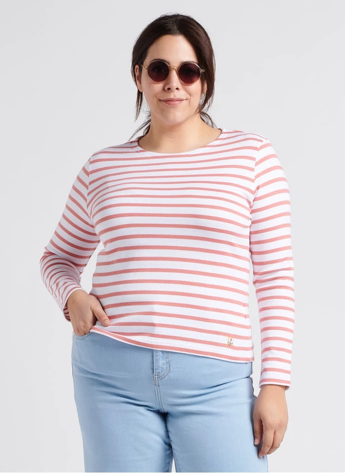Round-neck striped cotton T-shirt by Armor Lux for Women.