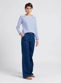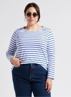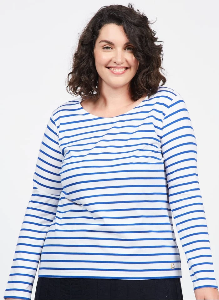 Round-neck light jersey Breton top by Armor Lux for Women.