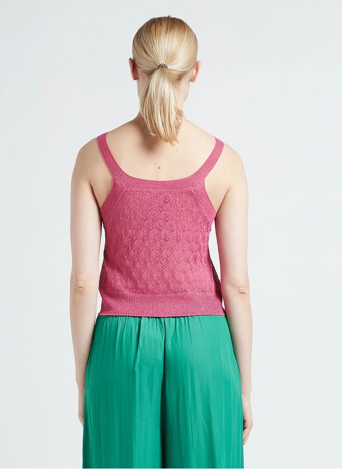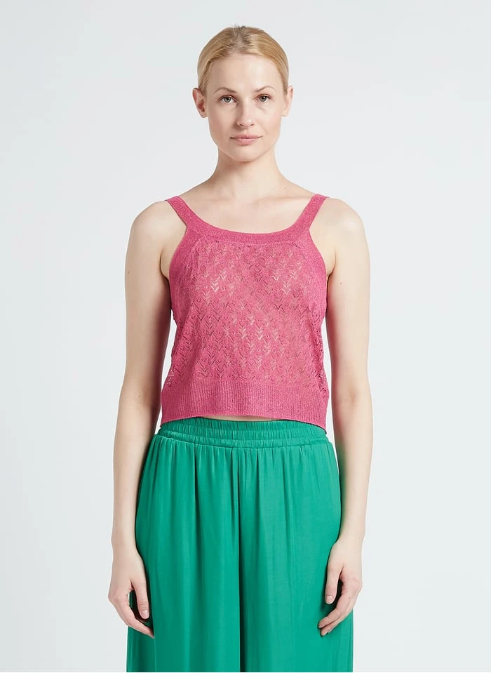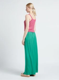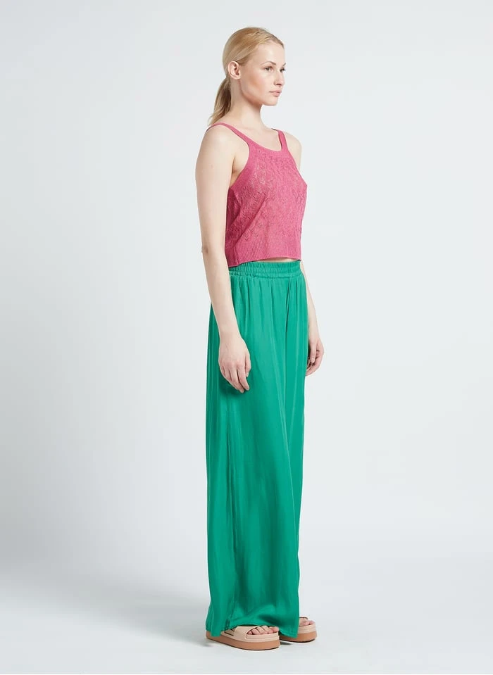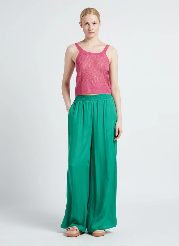 This model is shown wearing Wide-leg pants with elasticated waist by GRACE ET MILA, Platform sandals by MELISSA