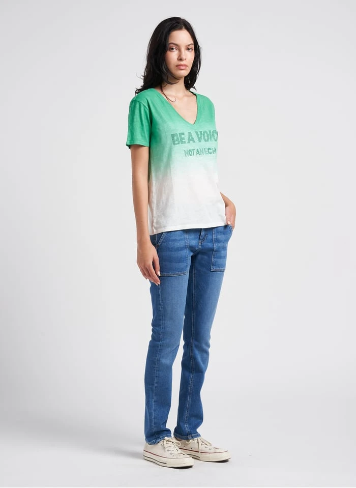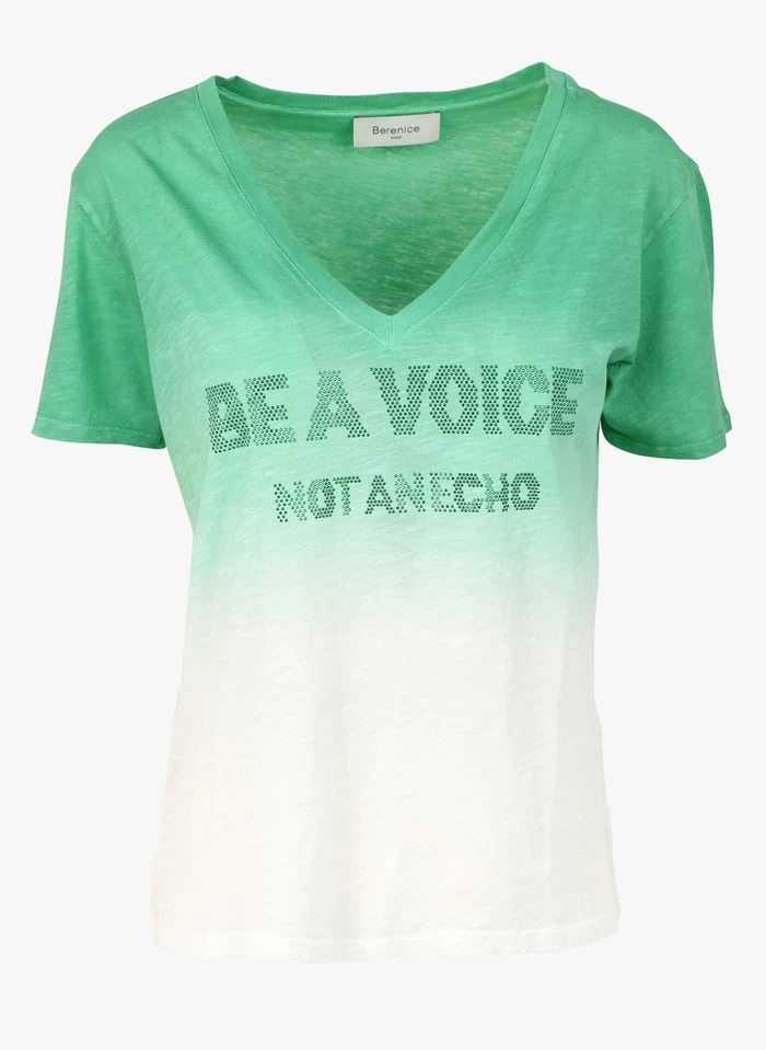 Cotton tie-dye printed V-neck T-shirt with diamanté by Berenice for Women.