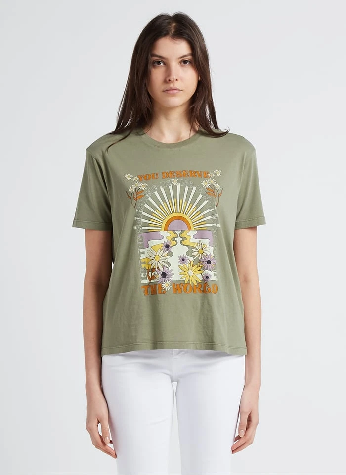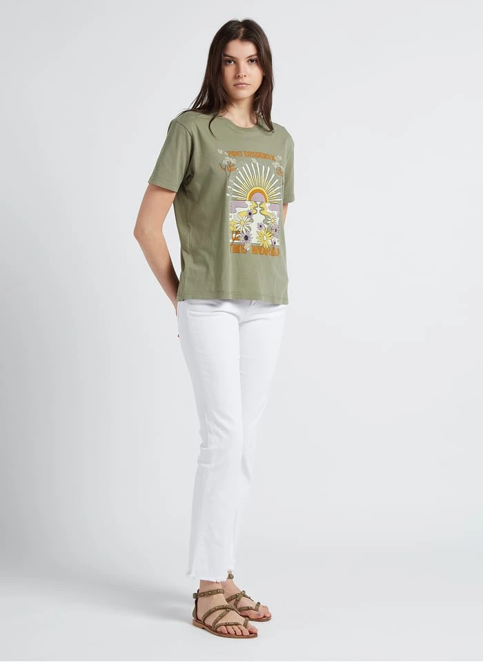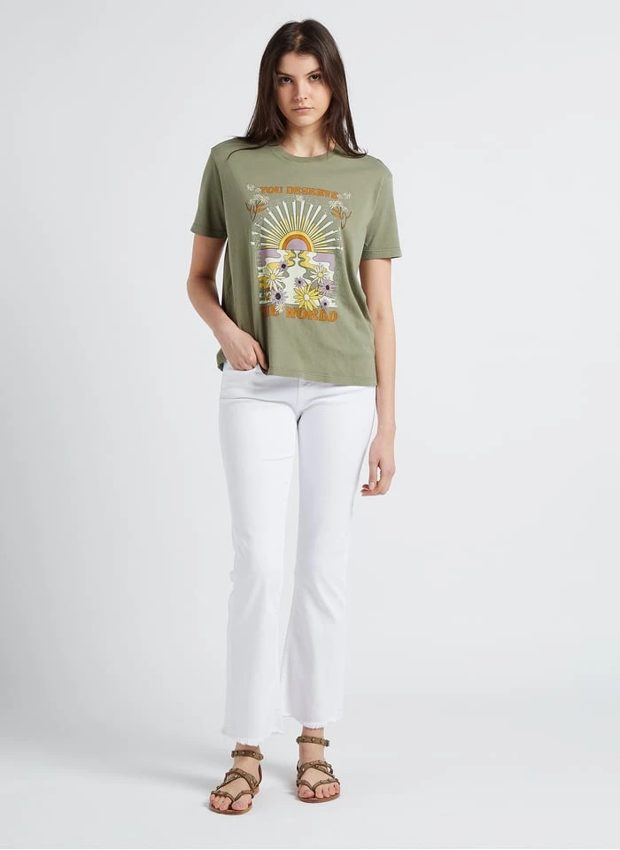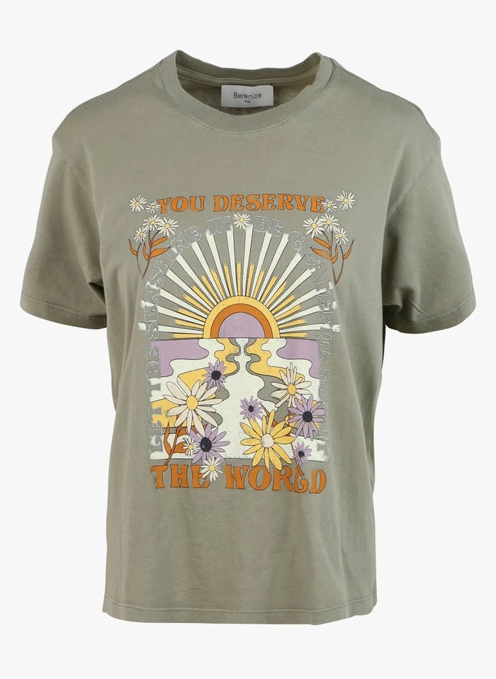 Round-neck cotton T-shirt with screen print by Berenice for Women.