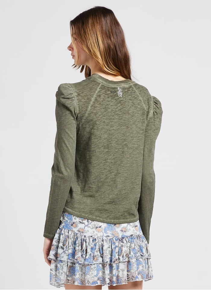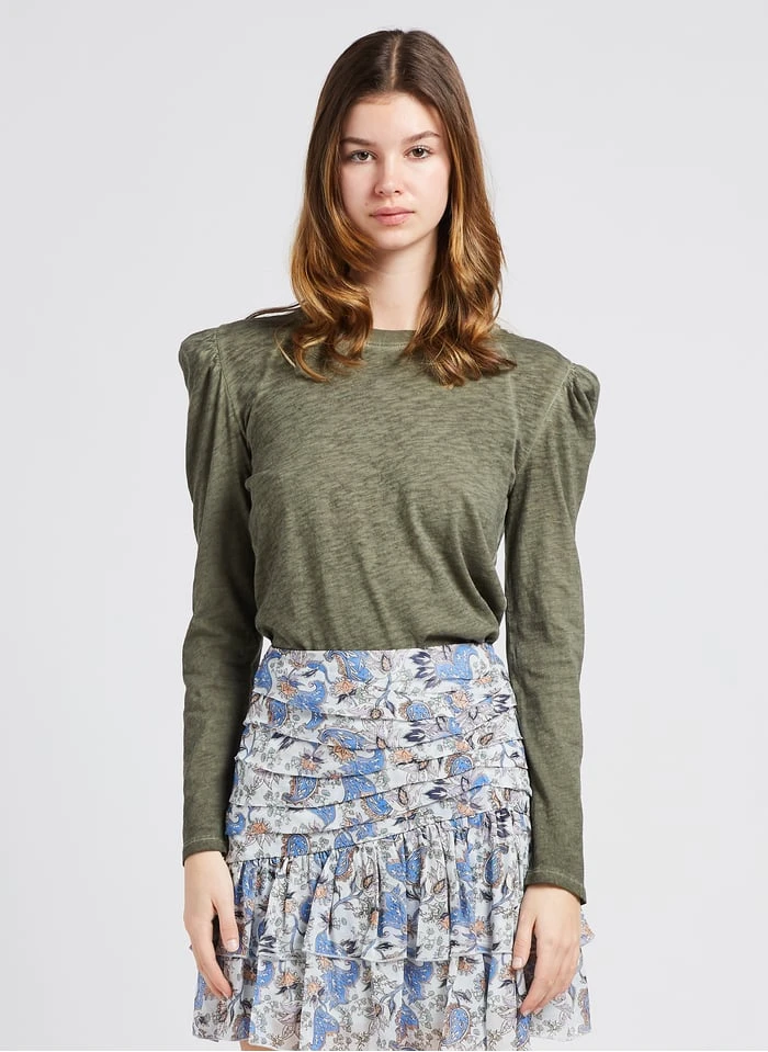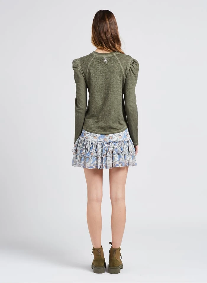 This model is shown wearing Short printed ruffled skirt by BERENICE, Canvas combat boots by BA & SH