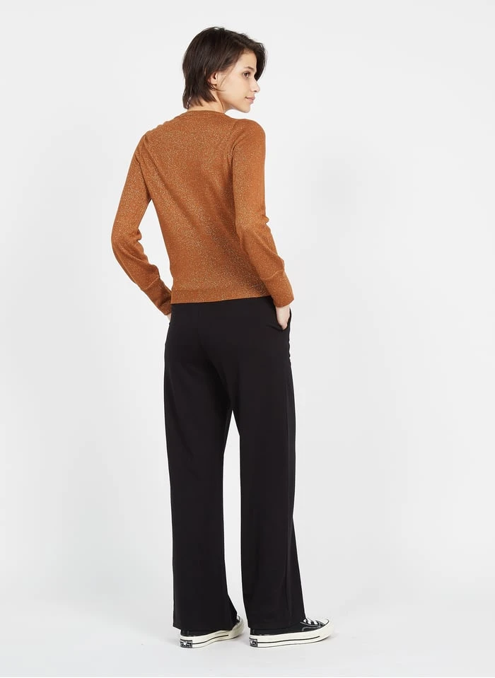 This model is shown wearing Round-neck knit sweater by I CODE
