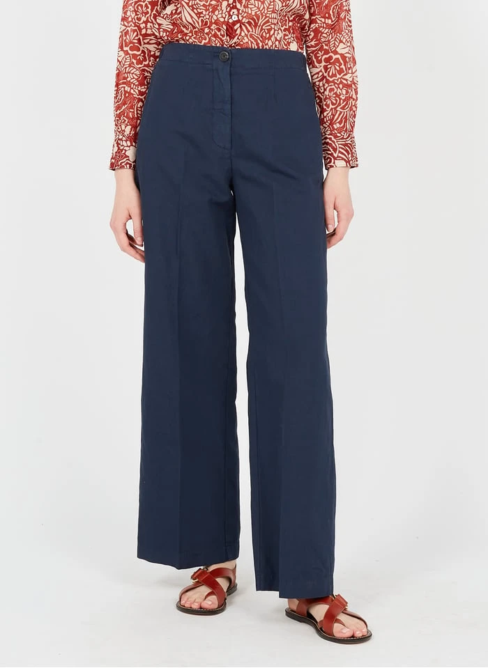 High-waisted wide-leg cotton and linen pants by Pomandere for Women.