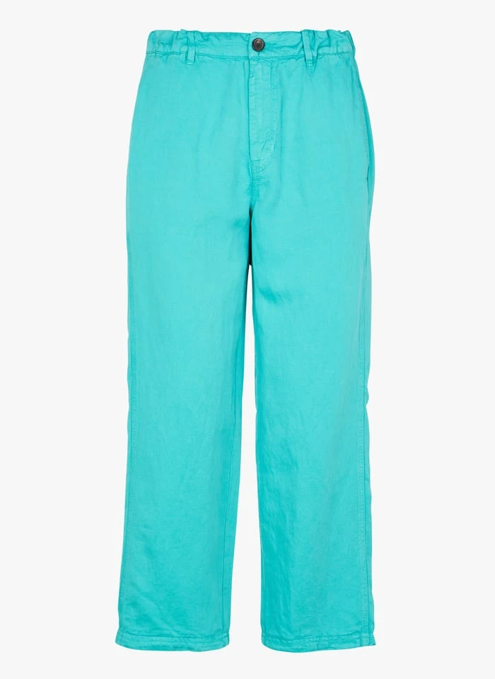 Wide-leg linen-blend cropped pants by Acote for Women.