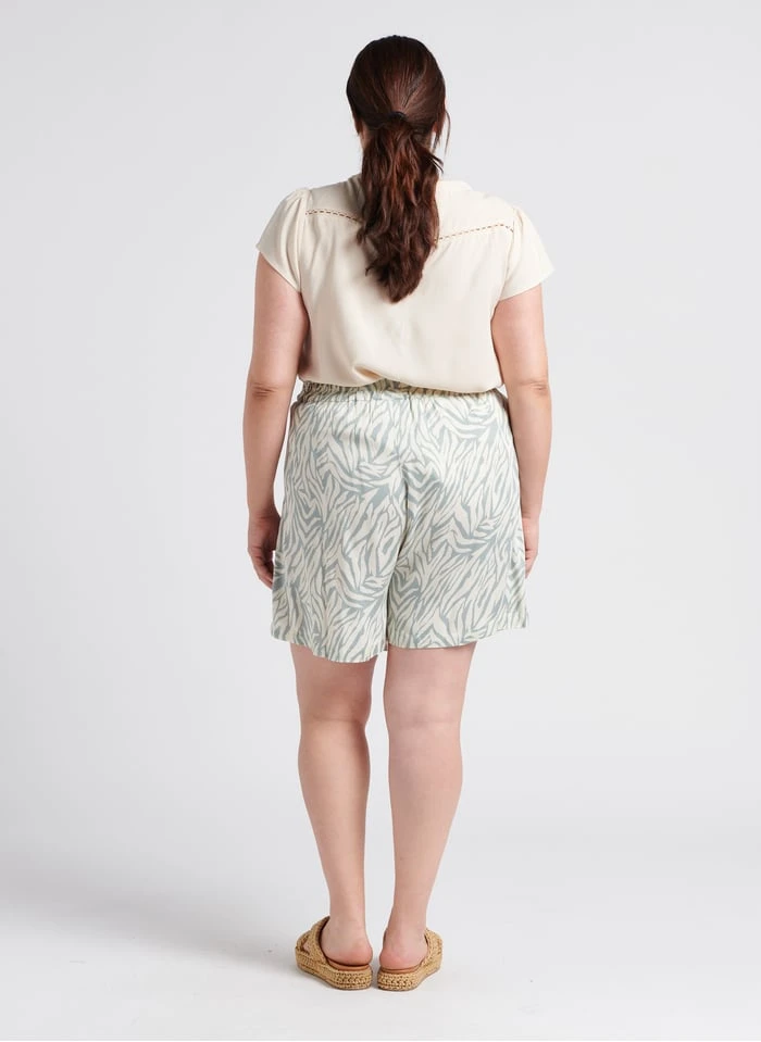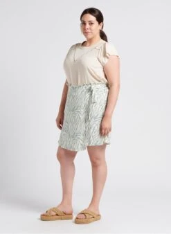 This model is shown wearing Round-neck T-shirt by EVOKED, Braided wedge mules by JONAK
