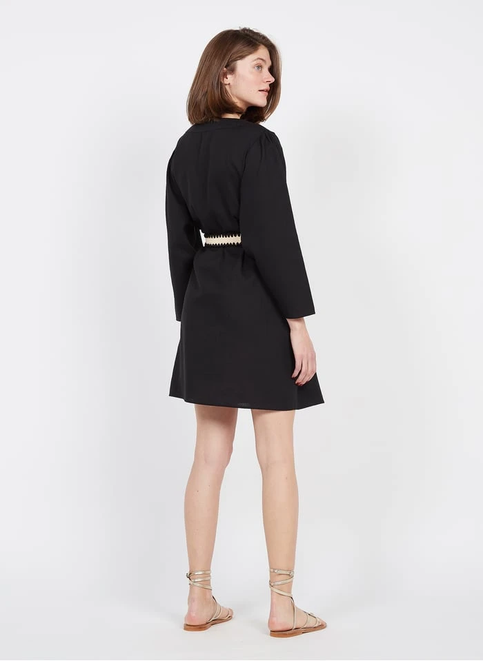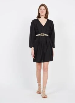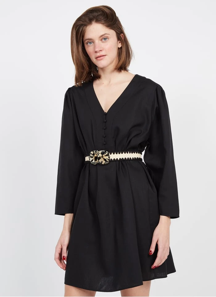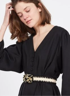 This model is shown wearing Raffia belt by DES PETITS HAUTS