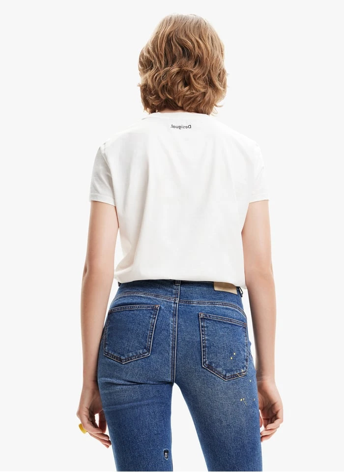 Round-neck printed cotton T-shirt by Desigual for Women.