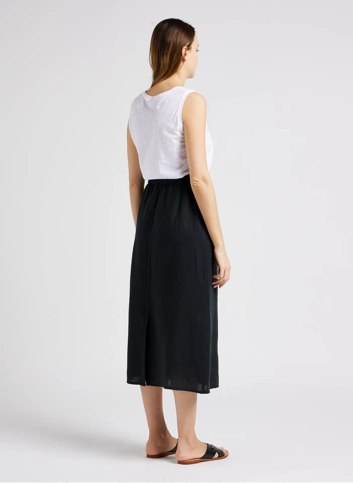 This model is shown wearing V-neck cotton-blend tank top by BENSIMON, Flat leather sandals by MELLOW YELLOW