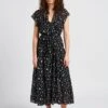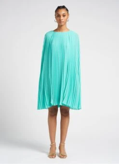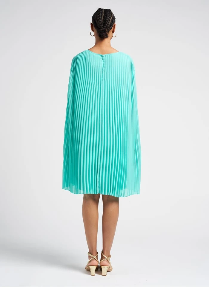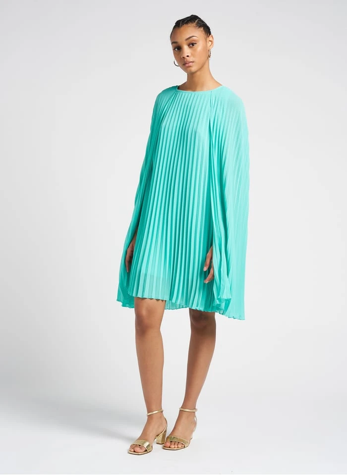 Round-neck pleated dress with cape by Essentiel Antwerp for Women.