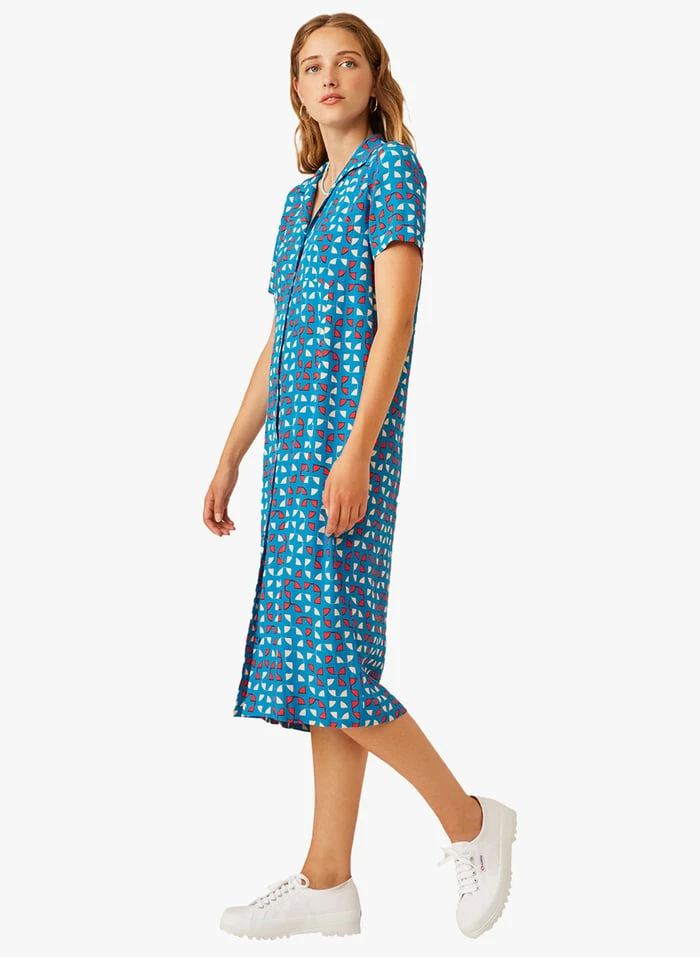Printed midi dress with lapel neck by Harris Wilson for Women.