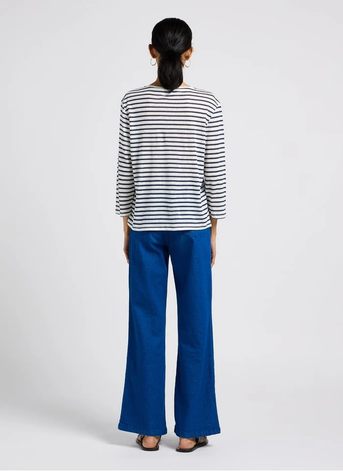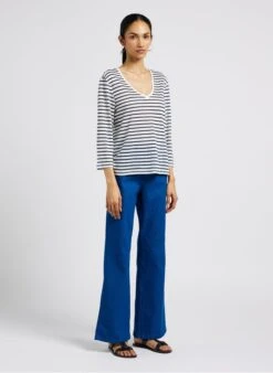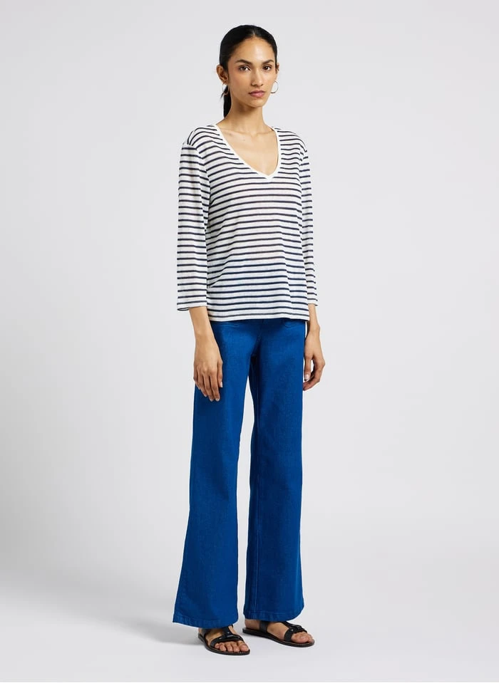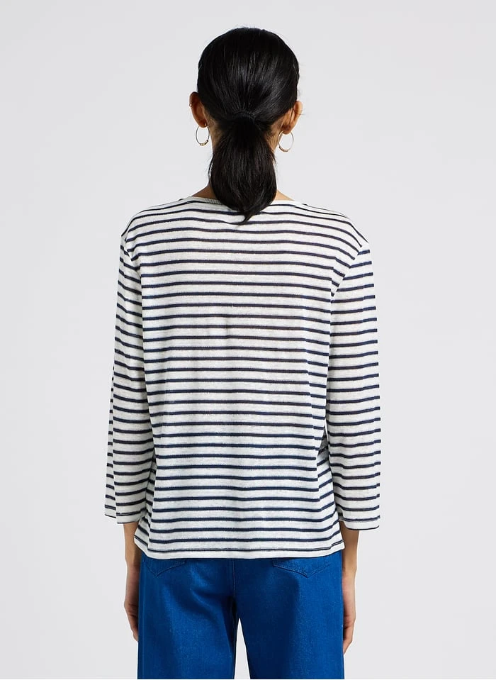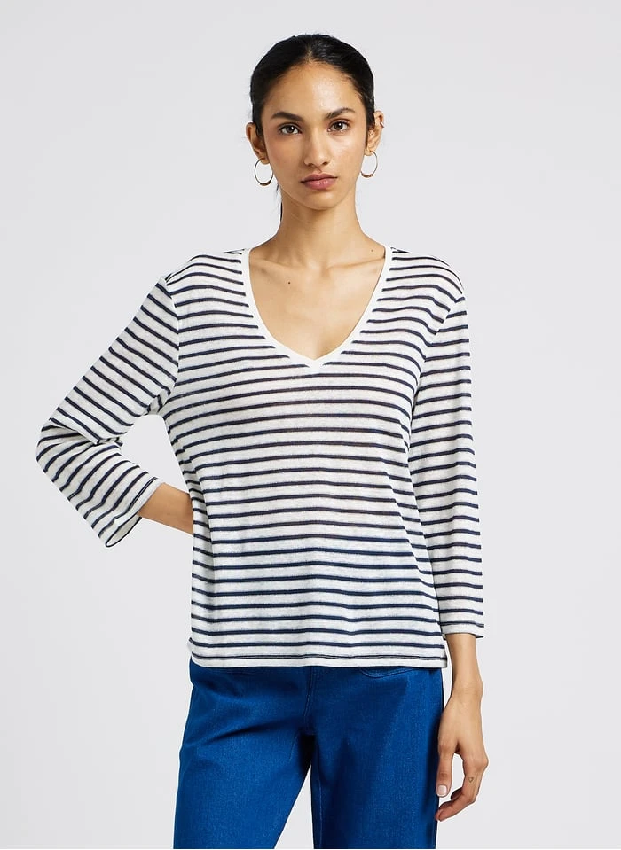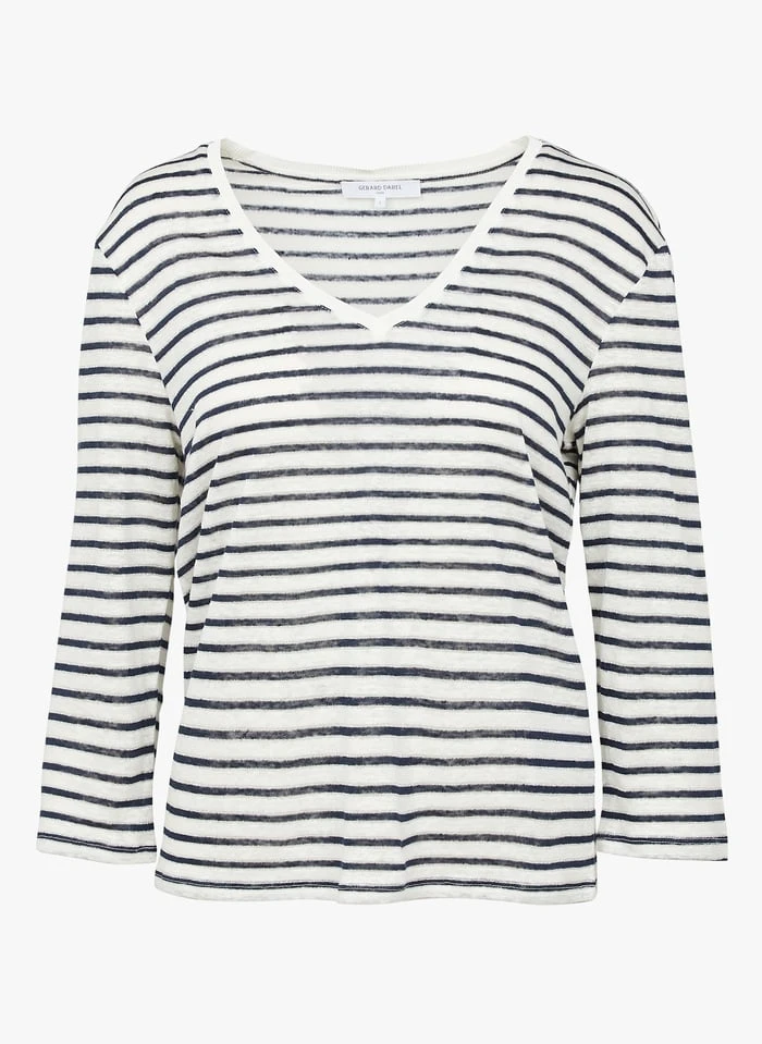 V-neck striped linen-blend T-shirt by Gerard Darel for Women.