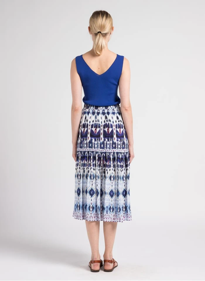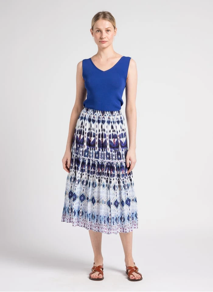 This model is shown wearing V-neck mixed-knit tank top by GERARD DAREL