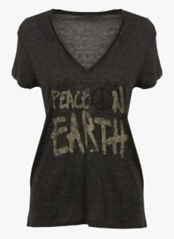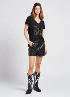 V-neck T-shirt with beaded screen print by IKKS for Women.