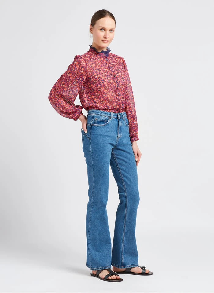 Flared cotton-blend jeans by IKKS for Women.