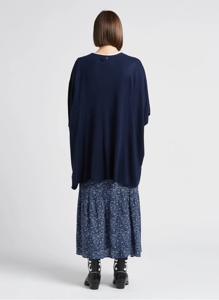 This model is shown wearing Long loose-fit poncho-style cardigan by SUD EXPRESS