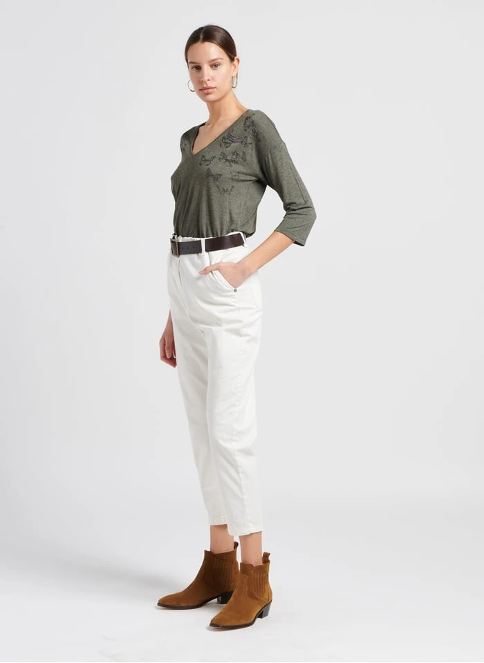 This model is shown wearing Straight-leg cotton pants by PLEASE