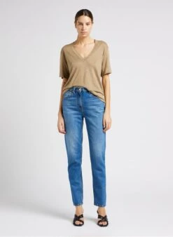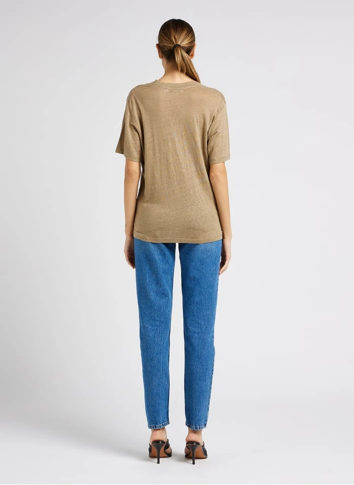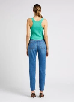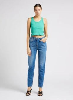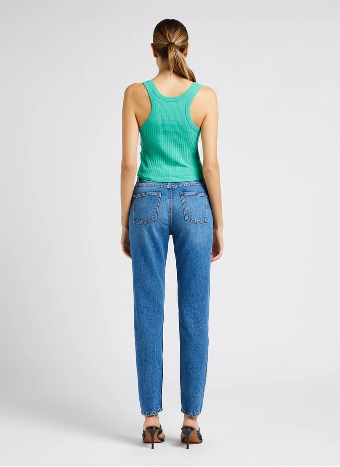 This model is shown wearing Ribbed cotton-blend tank top with round neck by IRO