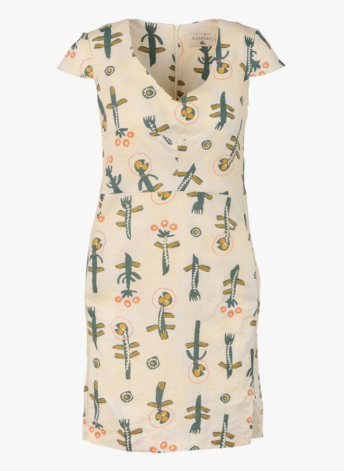 Short printed cotton-blend V-neck dress by Cotelac for Women.