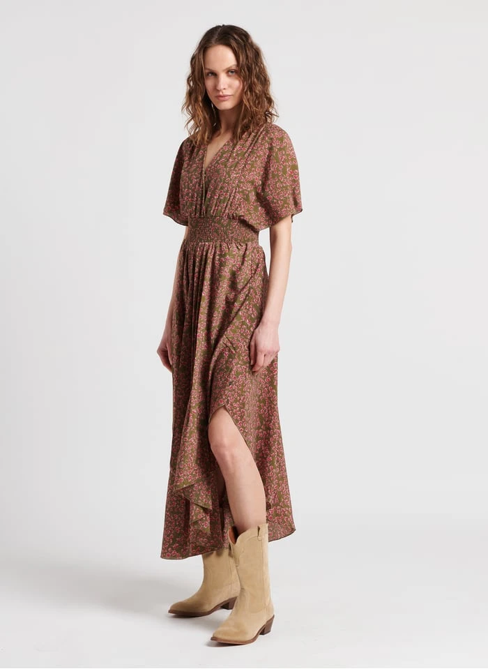 Long printed V-neck dress by Le Temps des Cerises for Women.