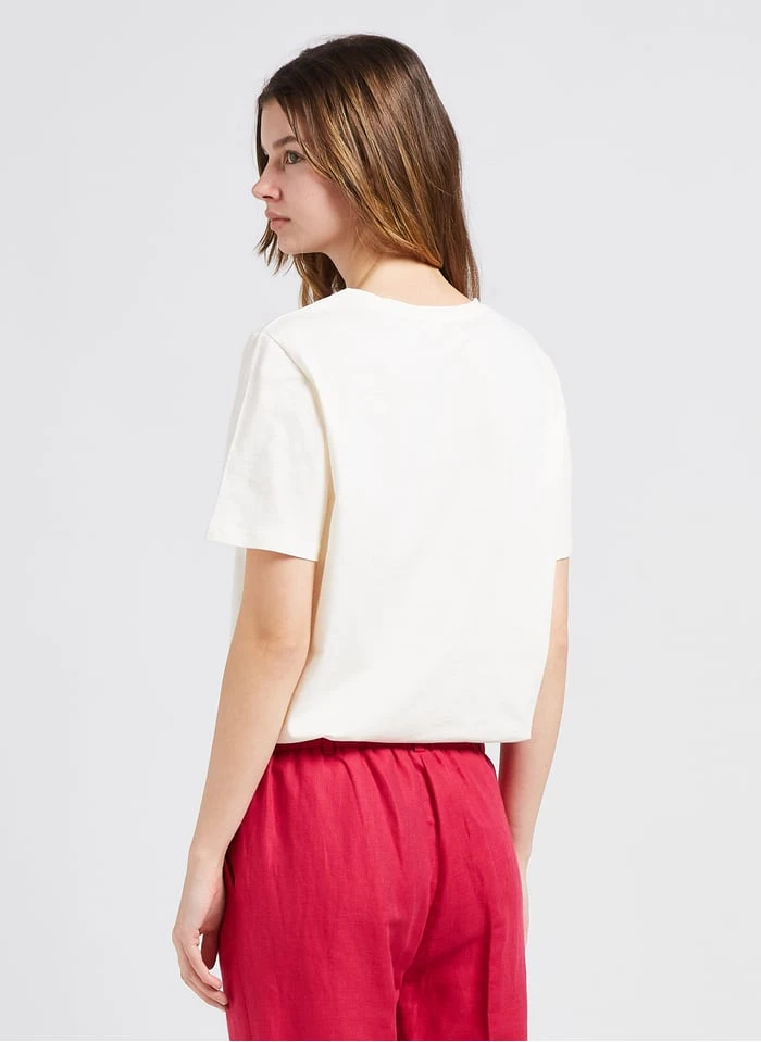 Round-neck cotton T-shirt with screen print by Maison 123 for Women.