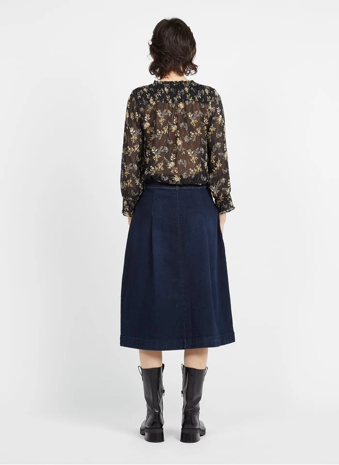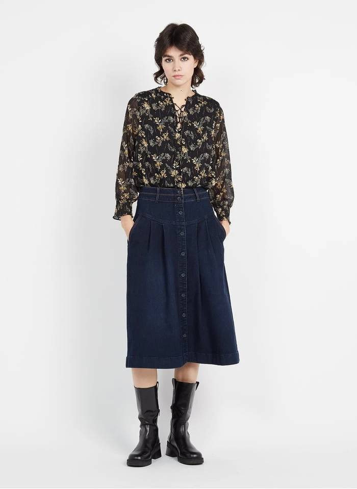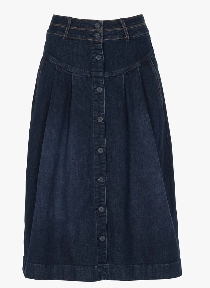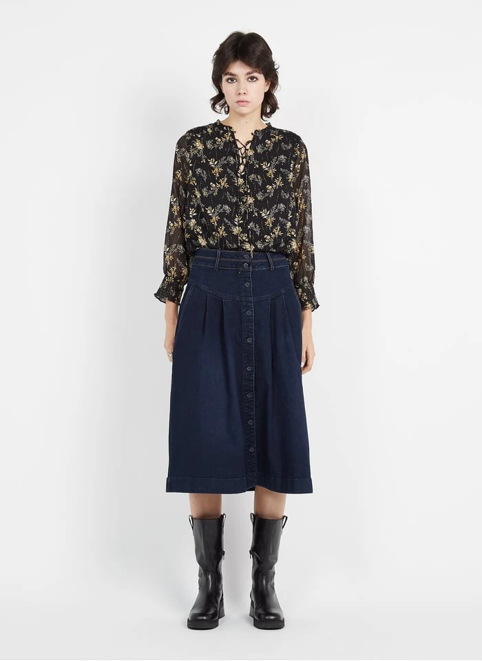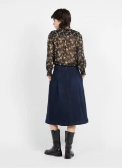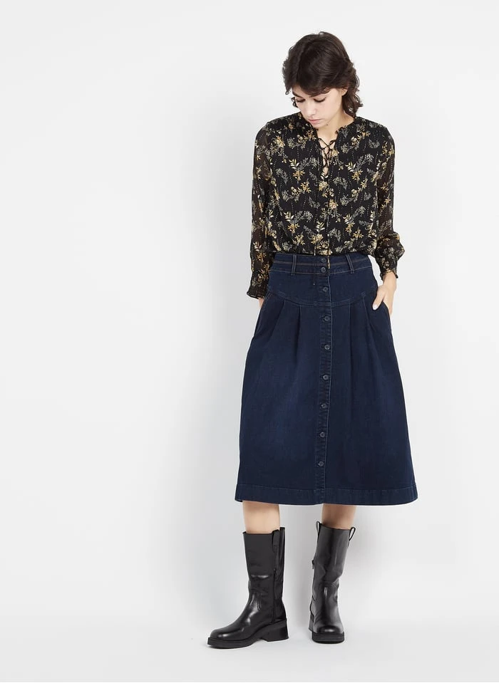 MAISON 123 KATE – Raw Denim Flared Cotton Midi Skirt