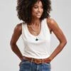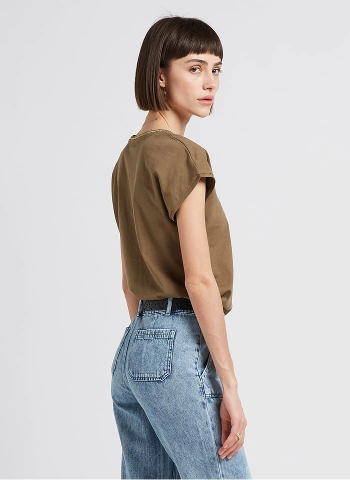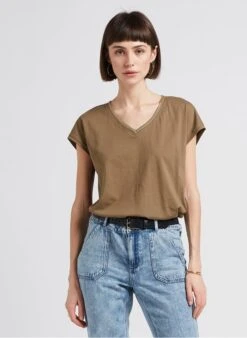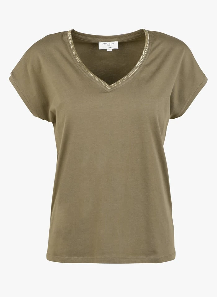 Straight-cut V-neck embroidered cotton T-shirt by Maison 123 for Women.