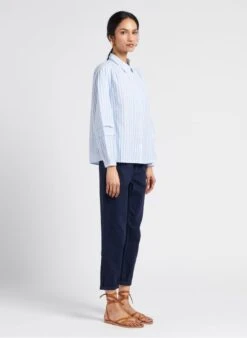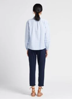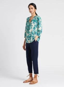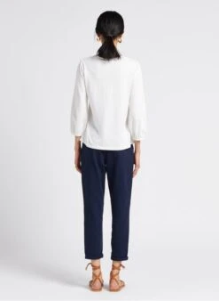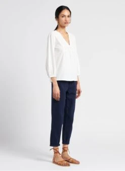 This model is shown wearing Cotton broderie anglaise V-neck blouse by MAISON 123