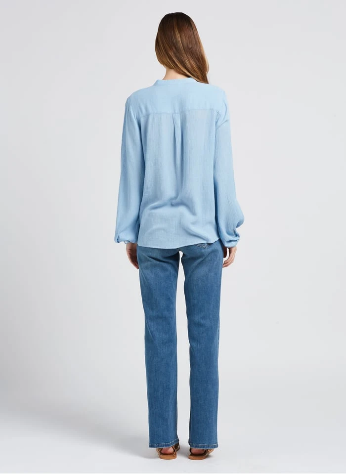 This model is shown wearing Round-neck textured jacket by MAISON 123