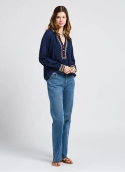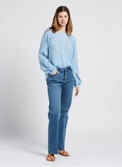 Flared stonewashed cotton-blend jeans by Maison 123 for Women.