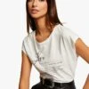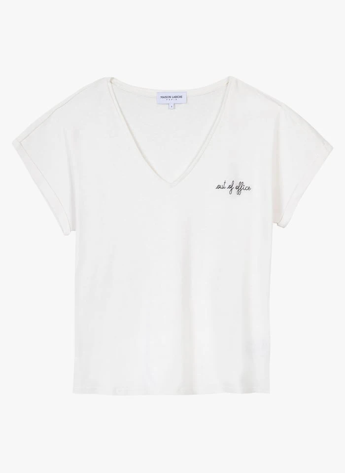 Maison Labiche CHATEAU OUT OF OFFICE – White Straight V-neck Linen And Cotton Blend T-shirt