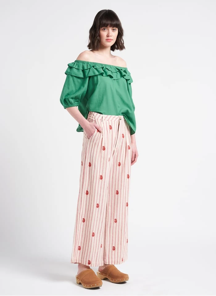 This model is shown wearing Ruffled cotton Bardot top by BA & SH