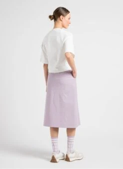 This model is shown wearing Stretch cotton midi skirt by MAX MARA LEISURE, New Balance 327 by NEW BALANCE