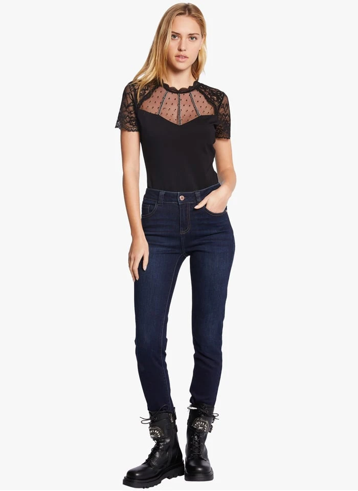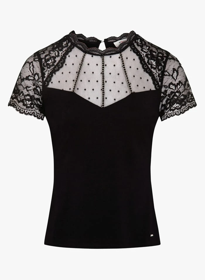 Short-sleeved T-shirt with lace by Morgan for Women.