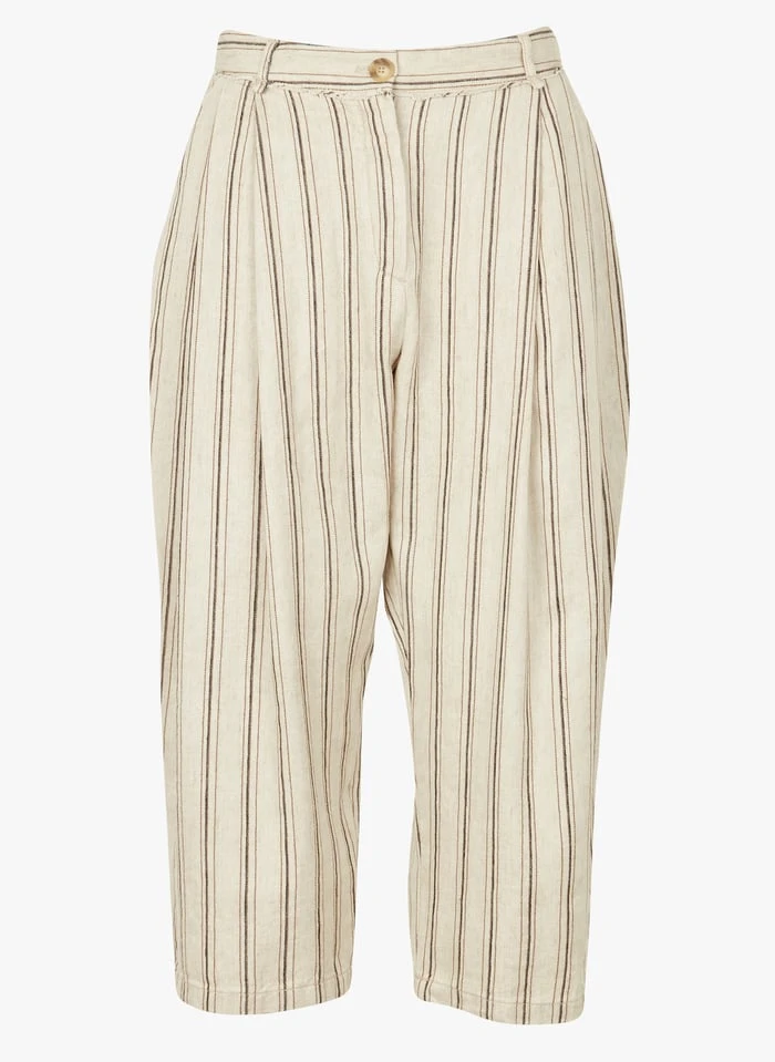 Striped linen-blend capri pants by Acote for Women.