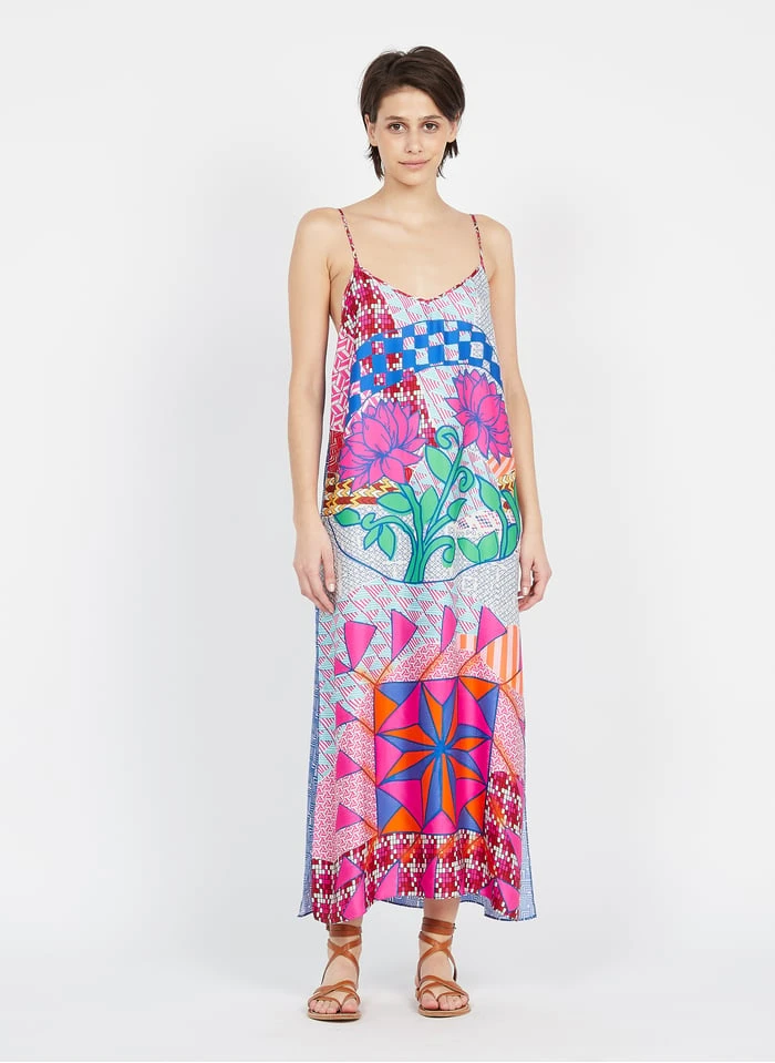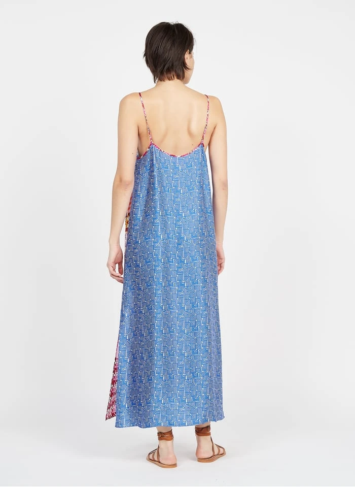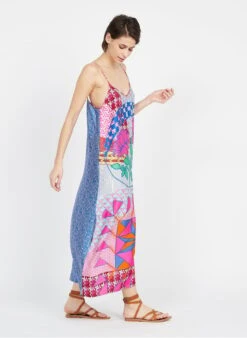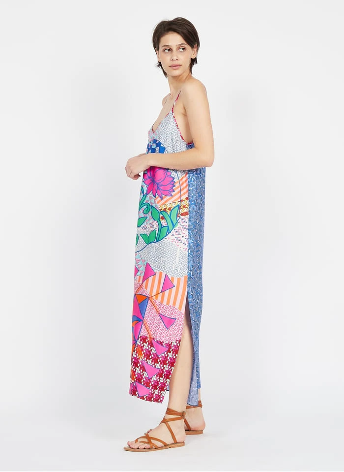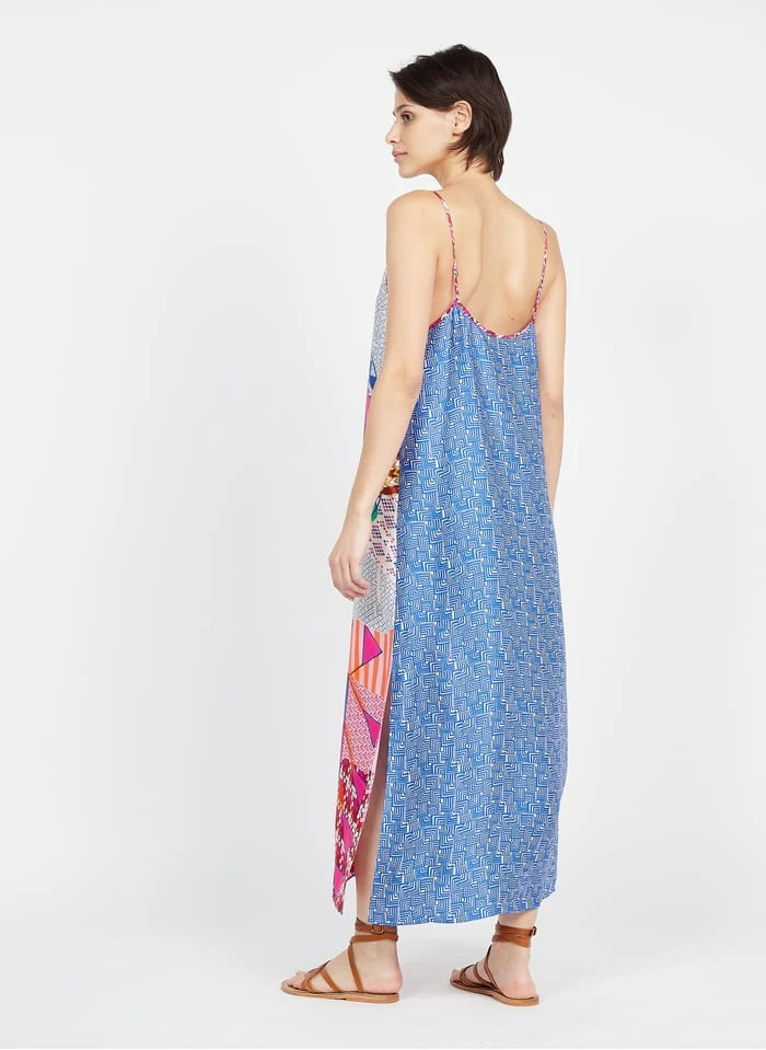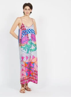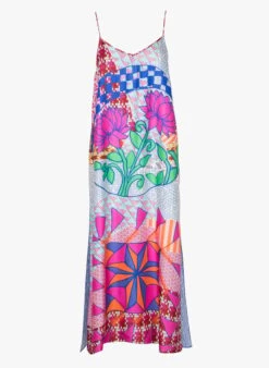 Long printed V-neck dress by Sack’s for Women.