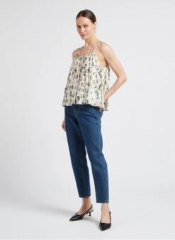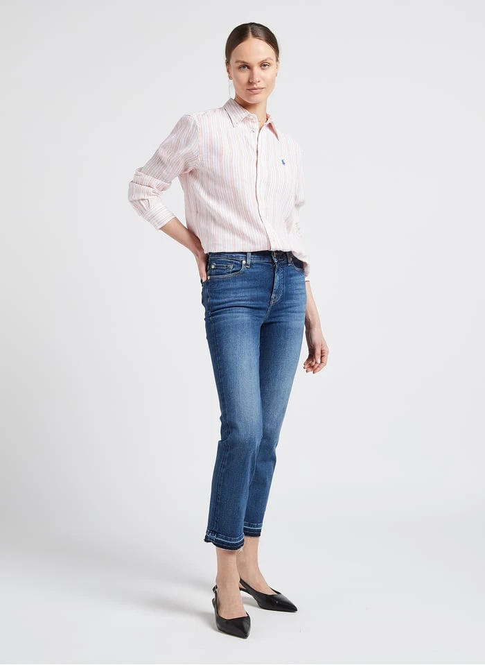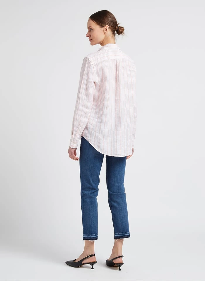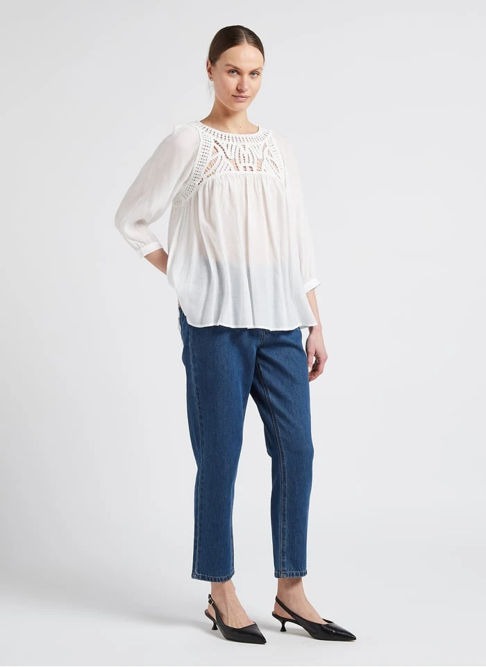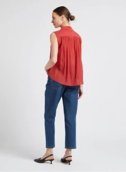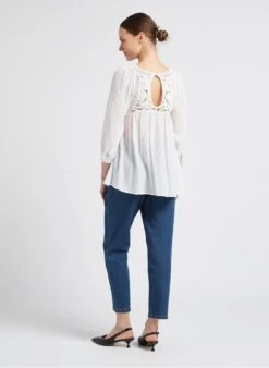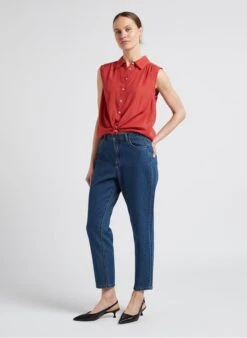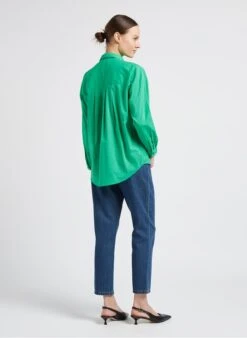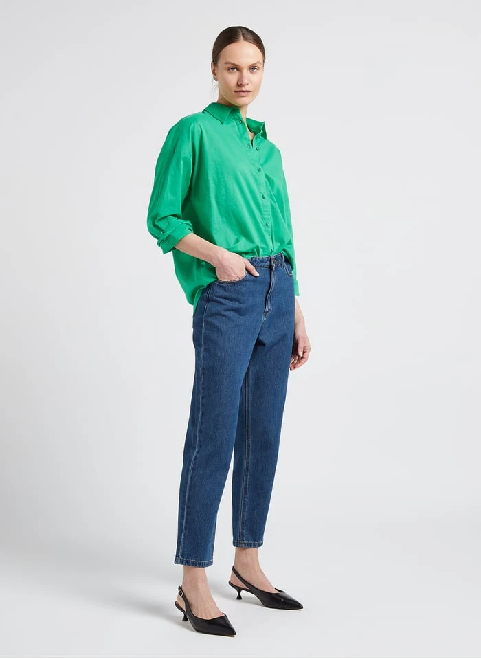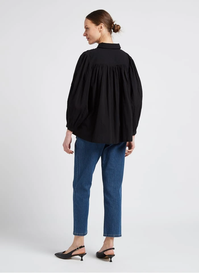 This model is shown wearing Viscose-blend blouse with classic collar by SEE U SOON, Leather slingbacks by MELLOW YELLOW