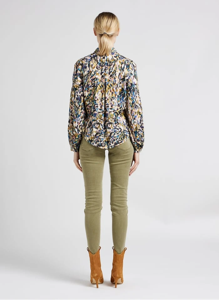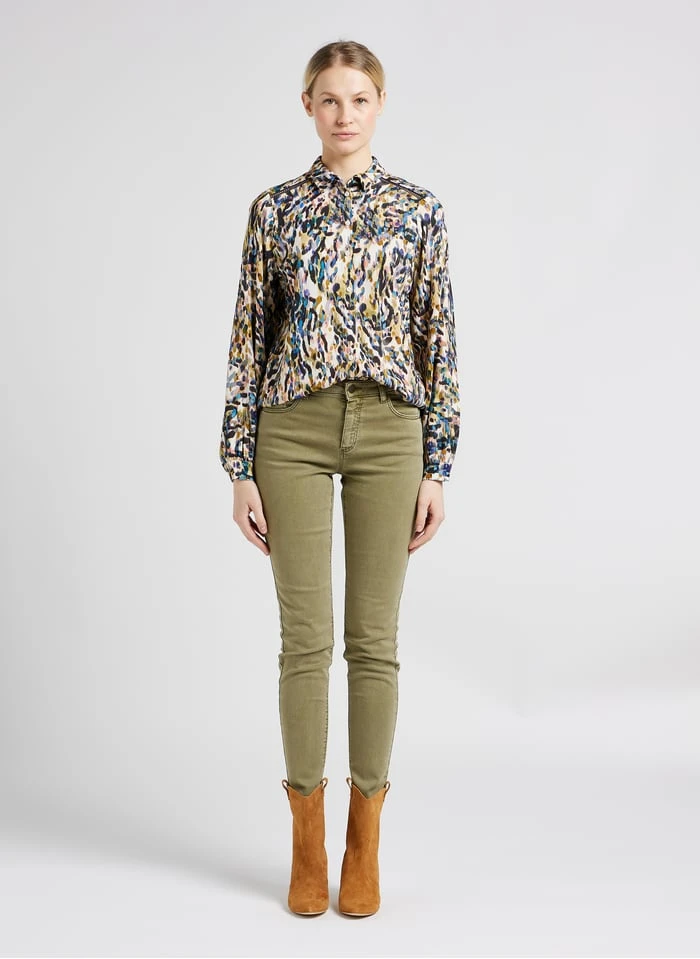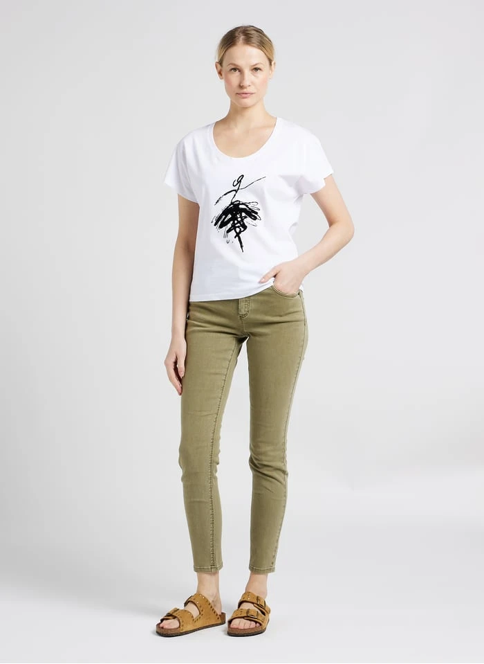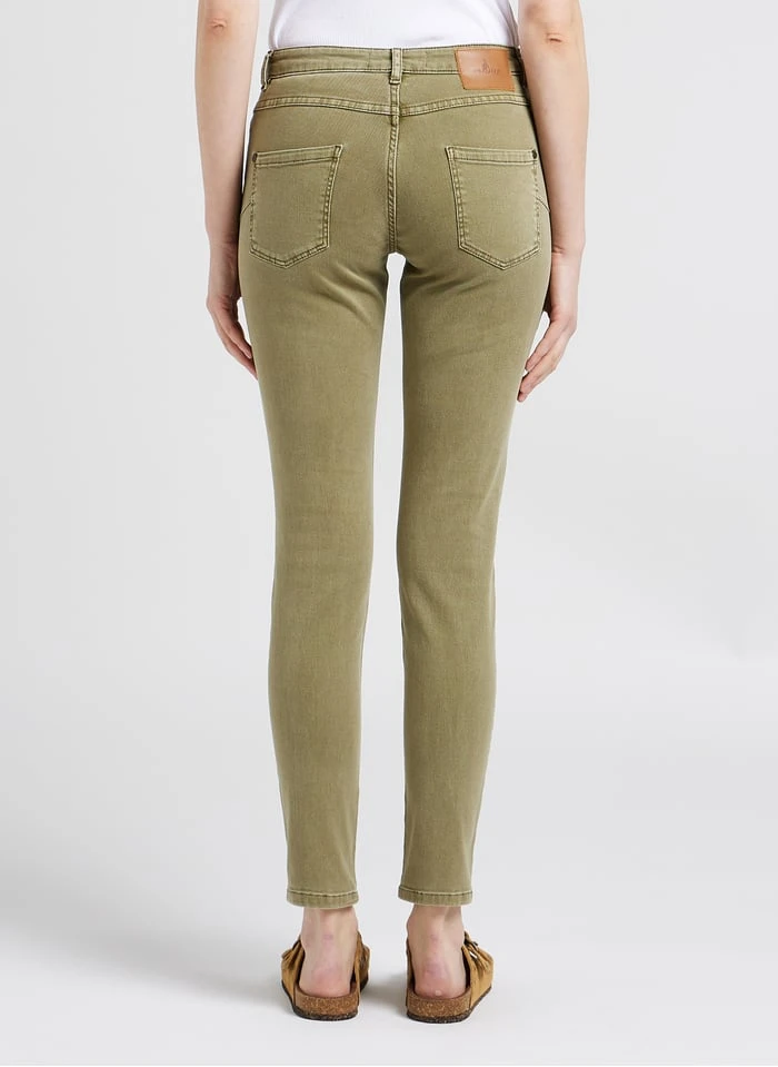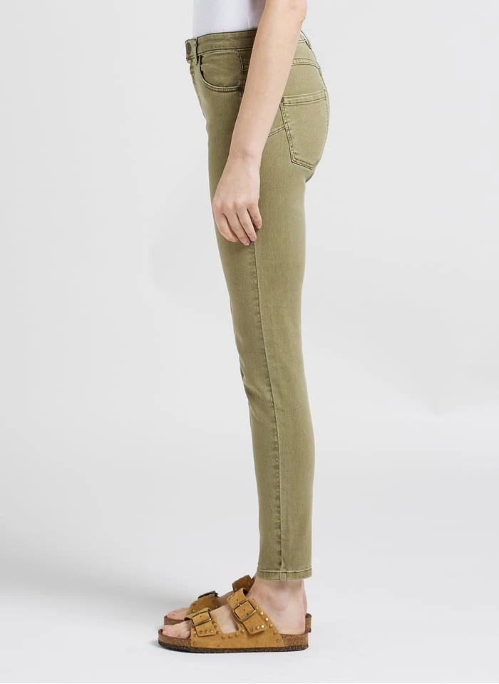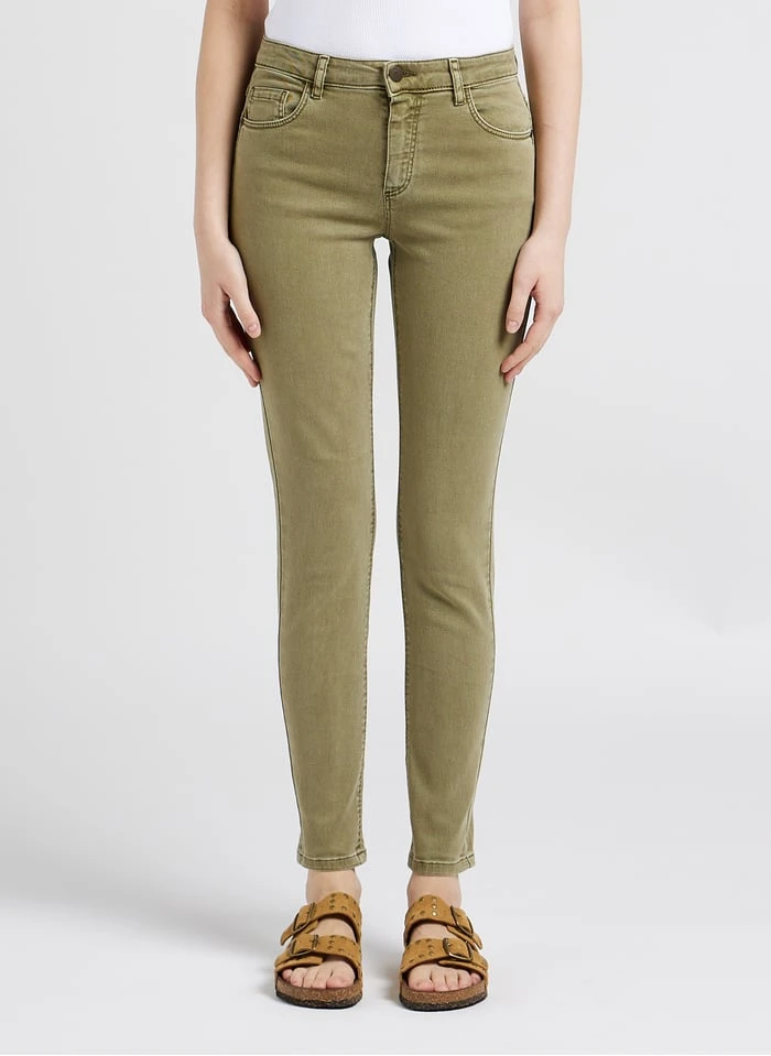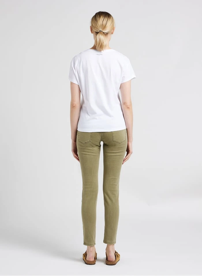 - Coupe slim / longueur 7/8ème / taille intermédiaire /sergé de coton et élasthanne mélangés / coupe 5 poches / effet push-up par découpes x-pocket / ceinture avec passants / fermeture par zip et bouton gravé danseuse