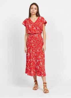 This model is shown wearing Floral print V-neck top by ONE STEP