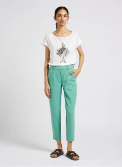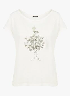 Boat-neck cotton-blend T-shirt with screen print by One Step for Women.