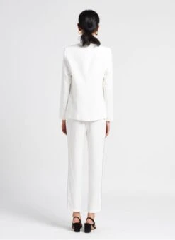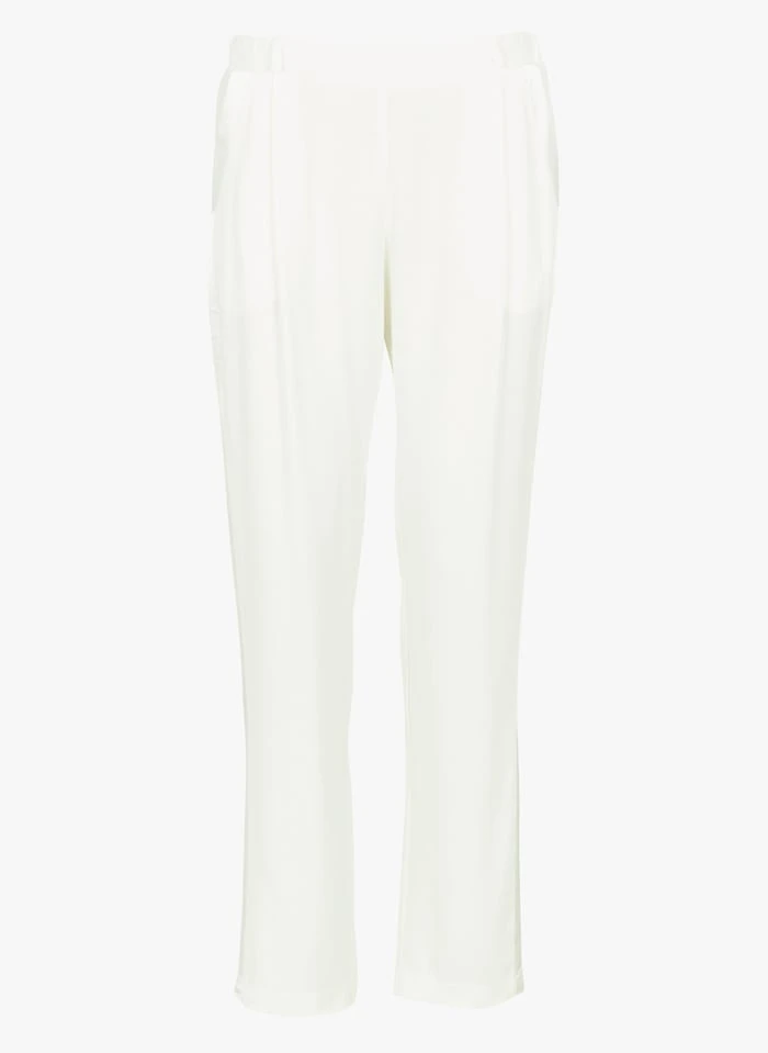 Straight pants with satiny strips by La Petite Française for Women.