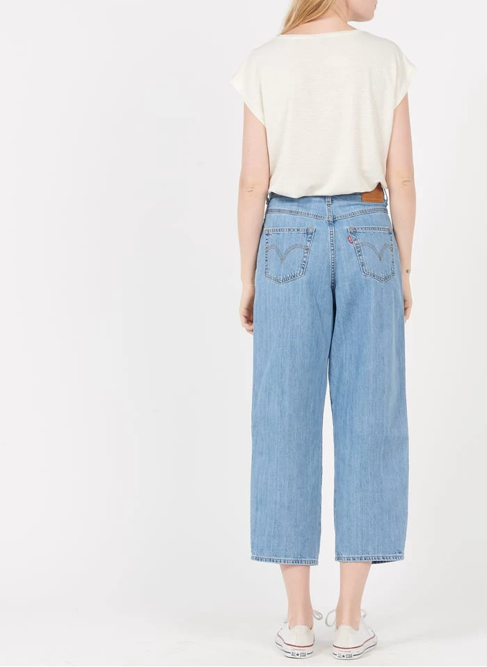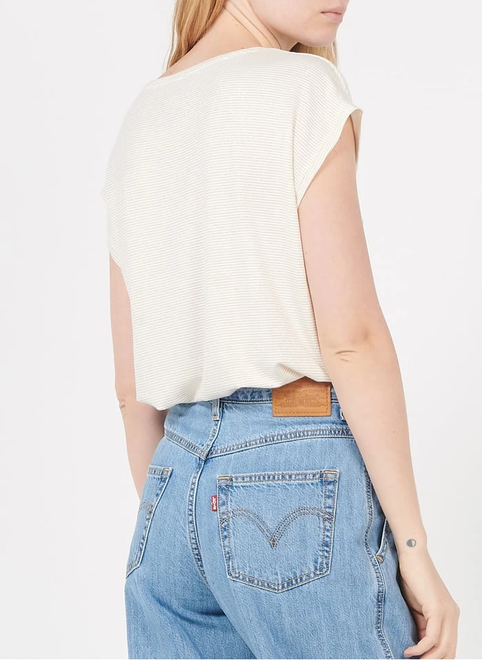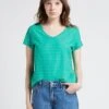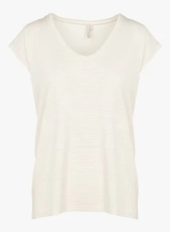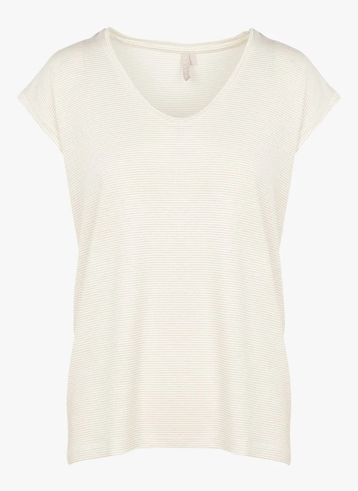 V-neck T-shirt with metallic thread pinstripes by Pieces for Women.