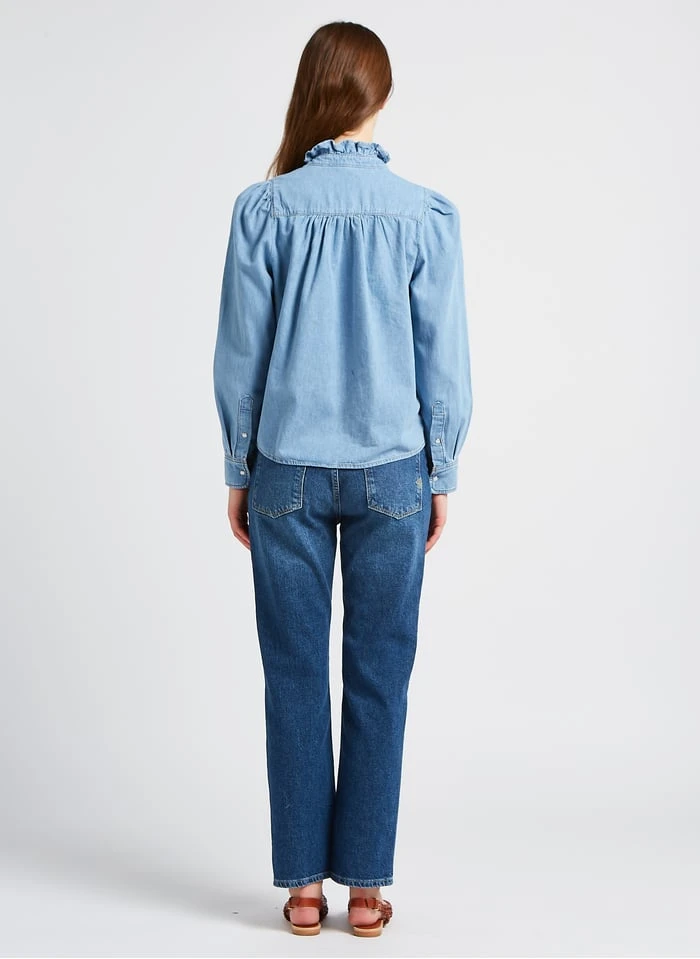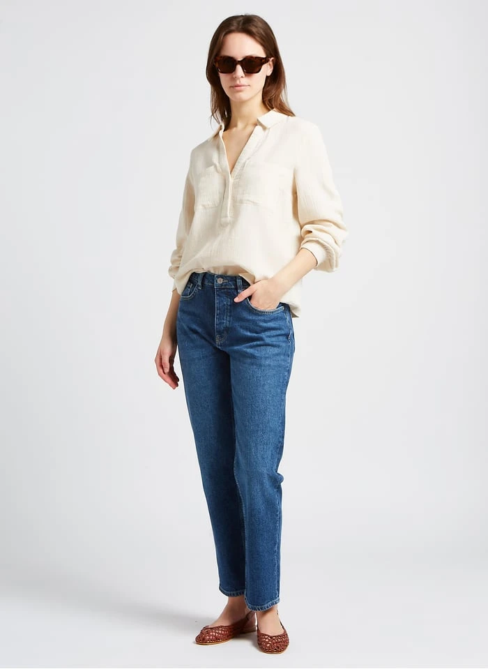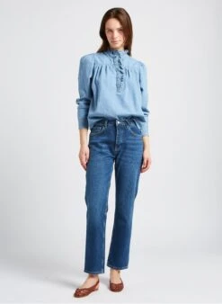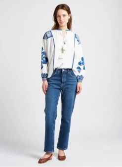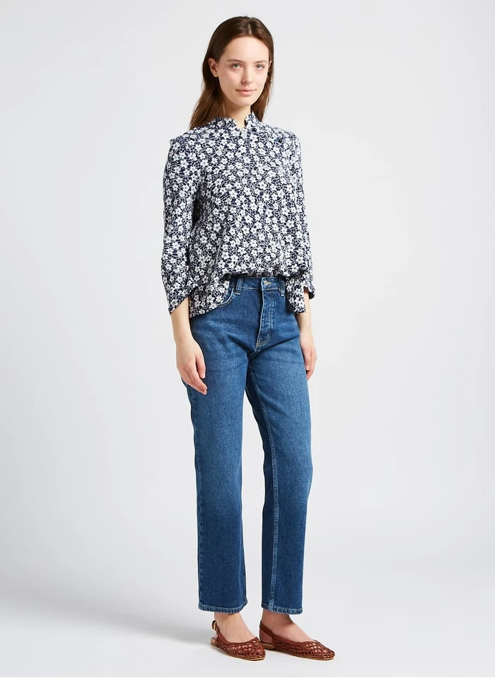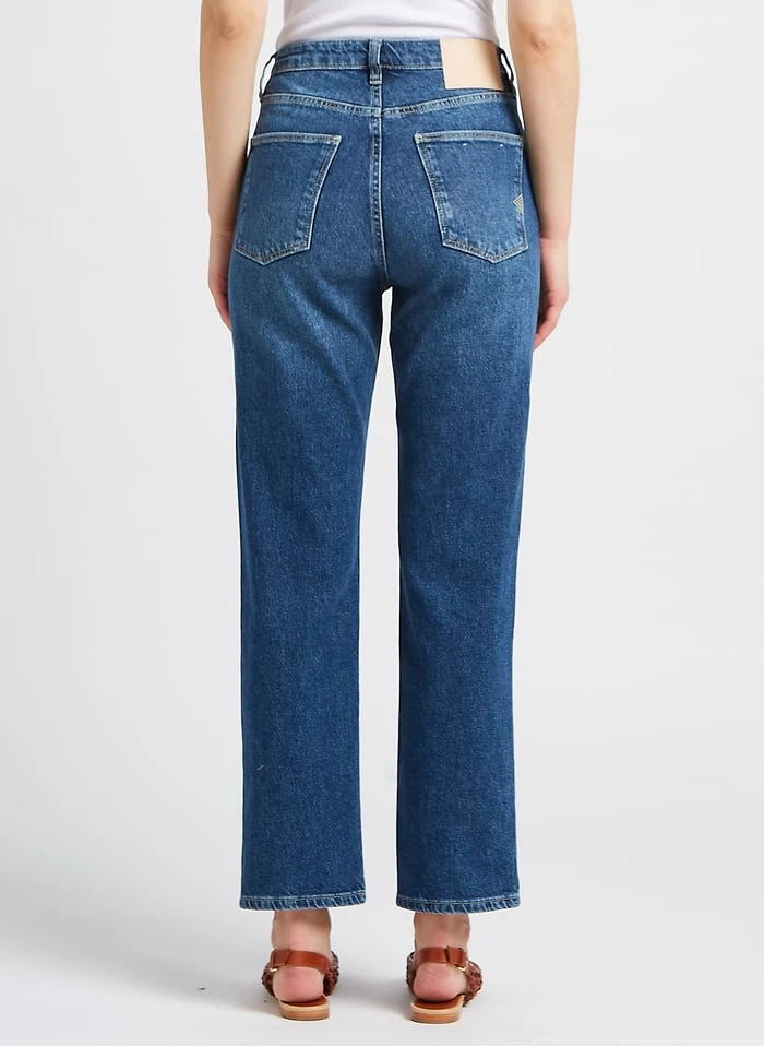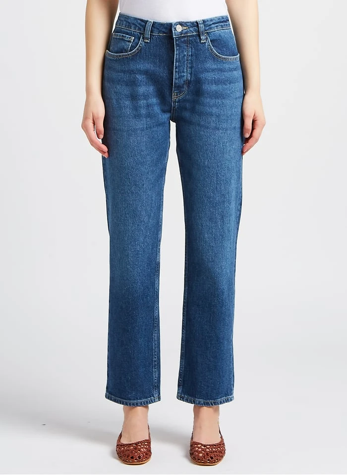 High-rise straight cotton-blend jeans by Reiko for Women.