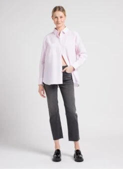 This model is shown wearing Cotton-blend shirt with classic collar by REIKO, Leather loafers by MICHAEL KORS