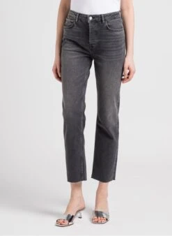 High-rise straight cotton-blend jeans by Reiko for Women.
